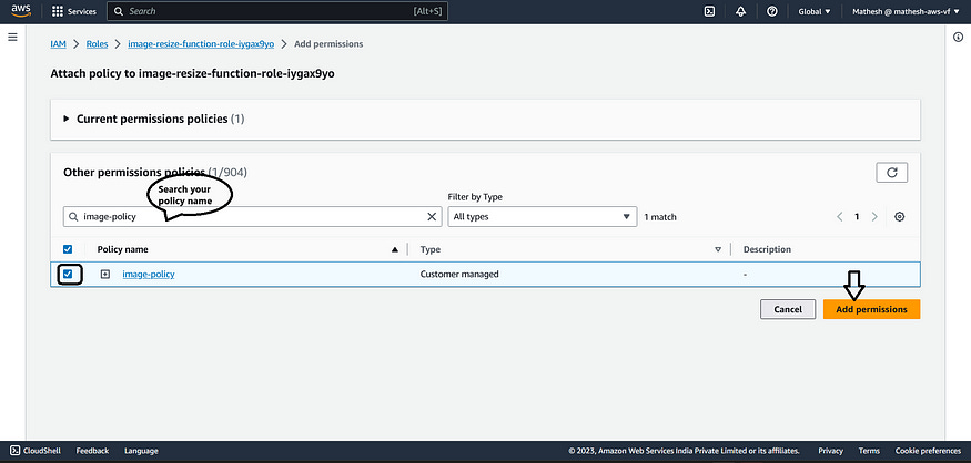 After that, We have to give some permission for our Lambda Function to do our process (resizing).