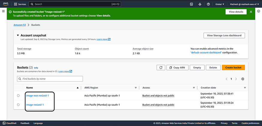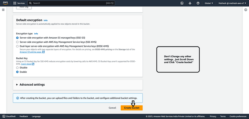 Now, Create the destination bucket using the same steps and name it with a unique name.