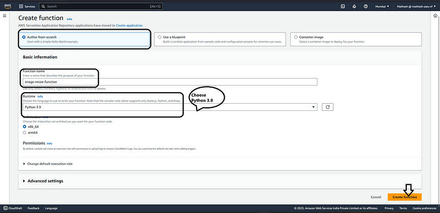 Navigate to the Lambda Console and follow the Outlined steps below.