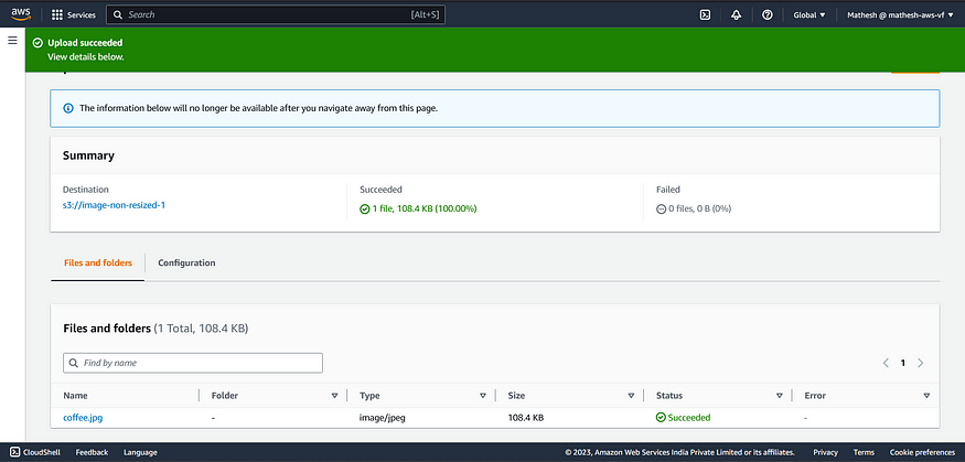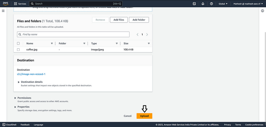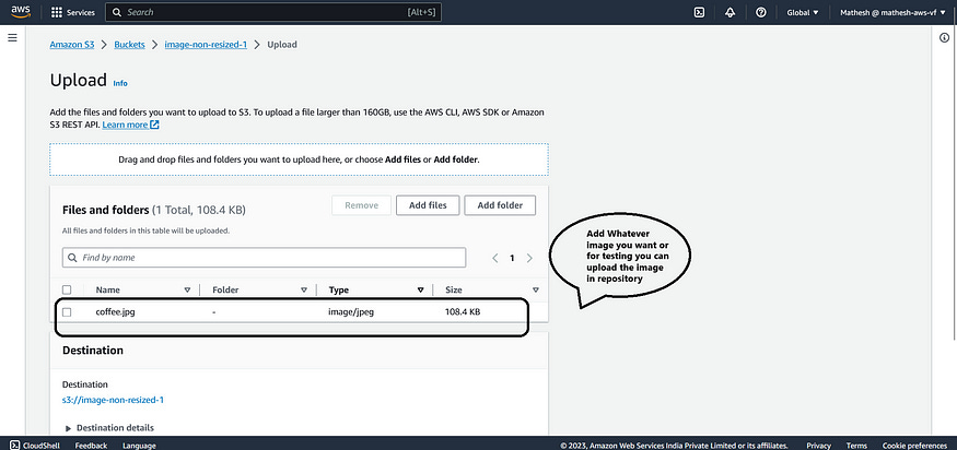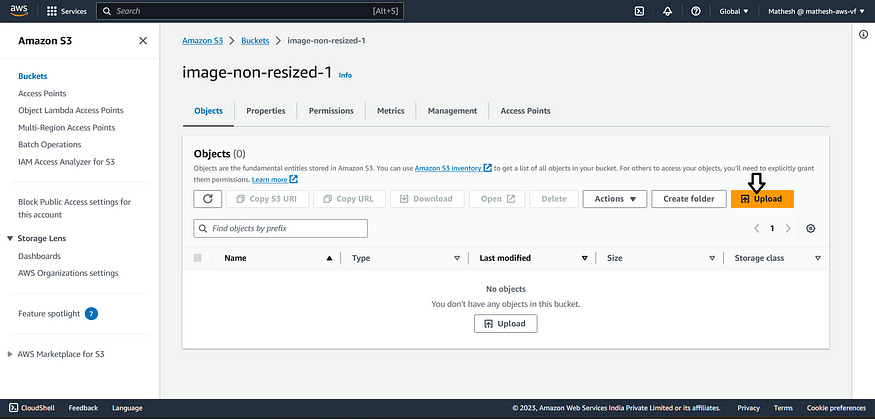 Navigate to the S3 Console and Upload Some images in Source Bucket.