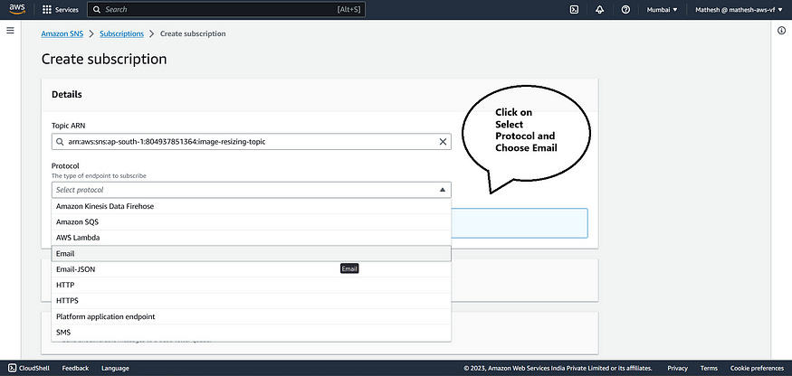 You can use any other protocols also like SQS, HTTP, SMS, etc.